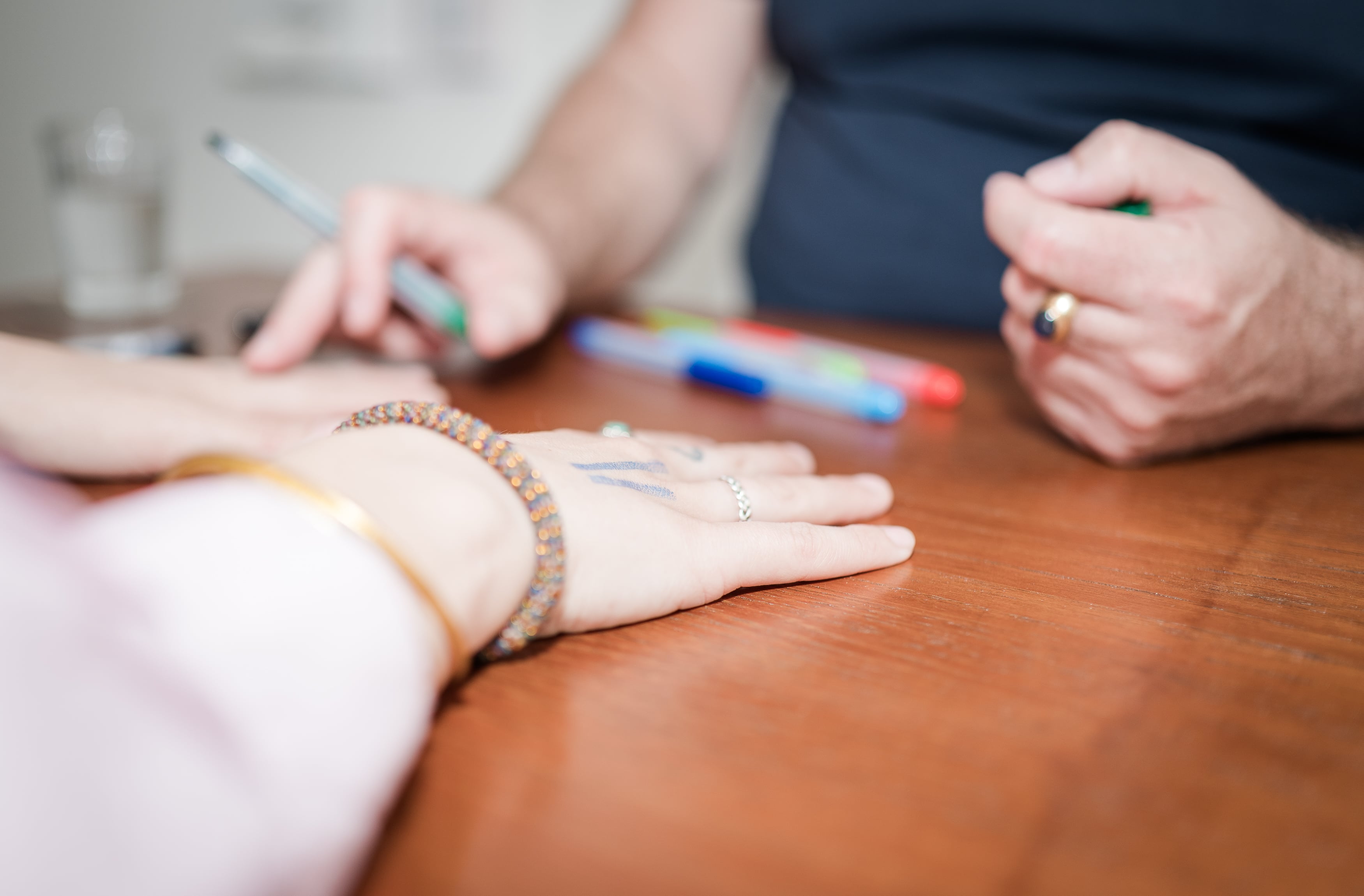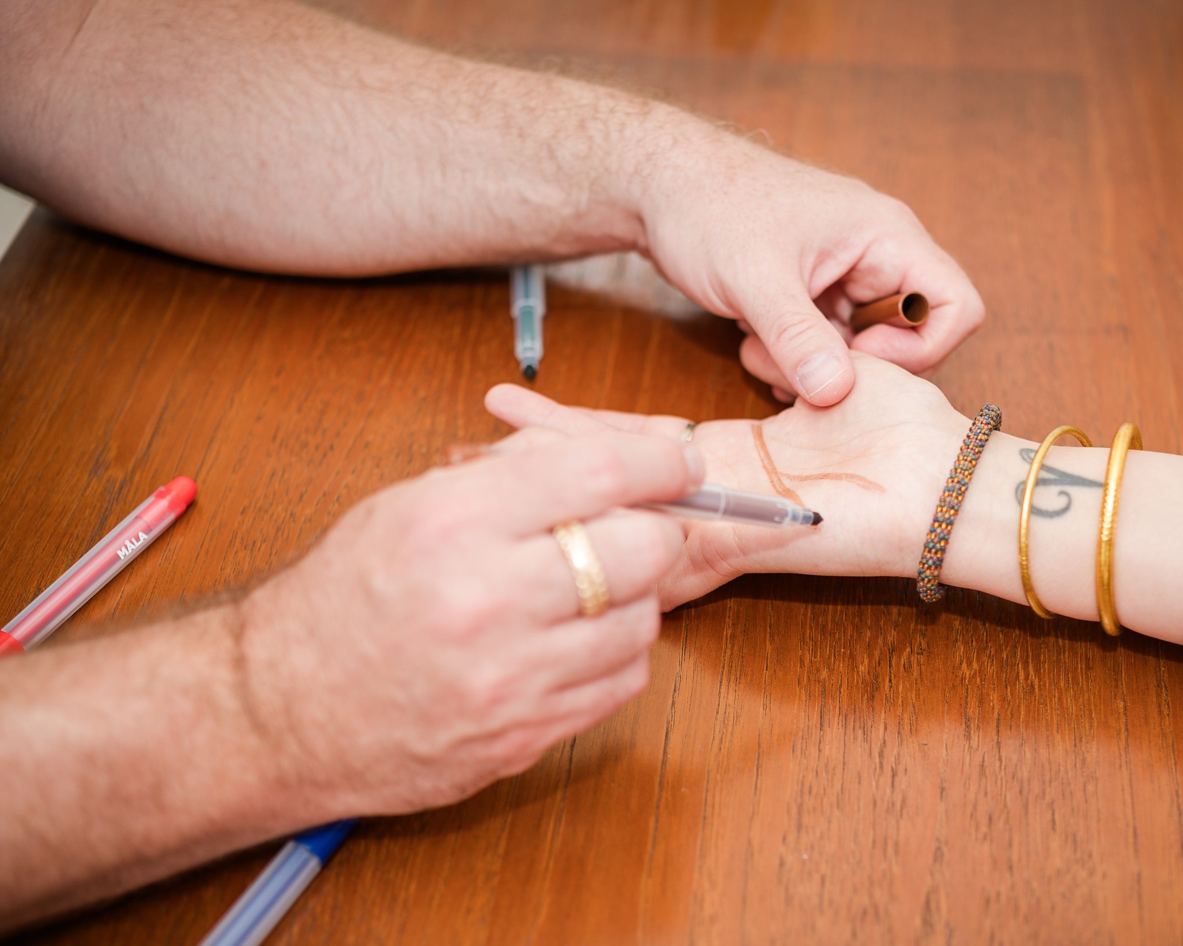 Her gennemgår jeg linjerne i din venstre og højre hånd, men fokus på dem der lyser op for det er dem der har brug for fokus...